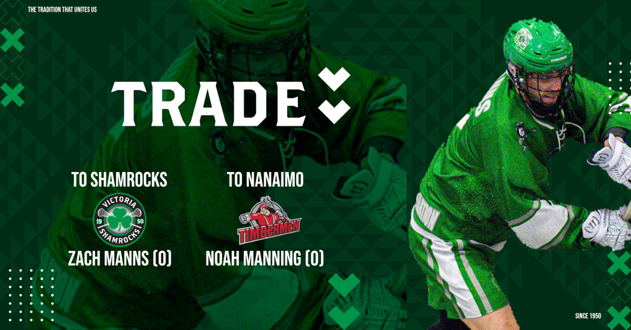 Victoria - The Shamrocks are pleased to announce that, in a trade with the Nanaimo Timbermen, we have acquired the Canadian playing rights to Zach Manns in exchange for the playing rights of Noah Manning.